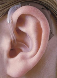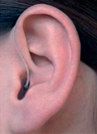 Es una variación de aparatos auditivo BTE pero mucho más discreta y pequeña que se coloca detrás de la oreja.